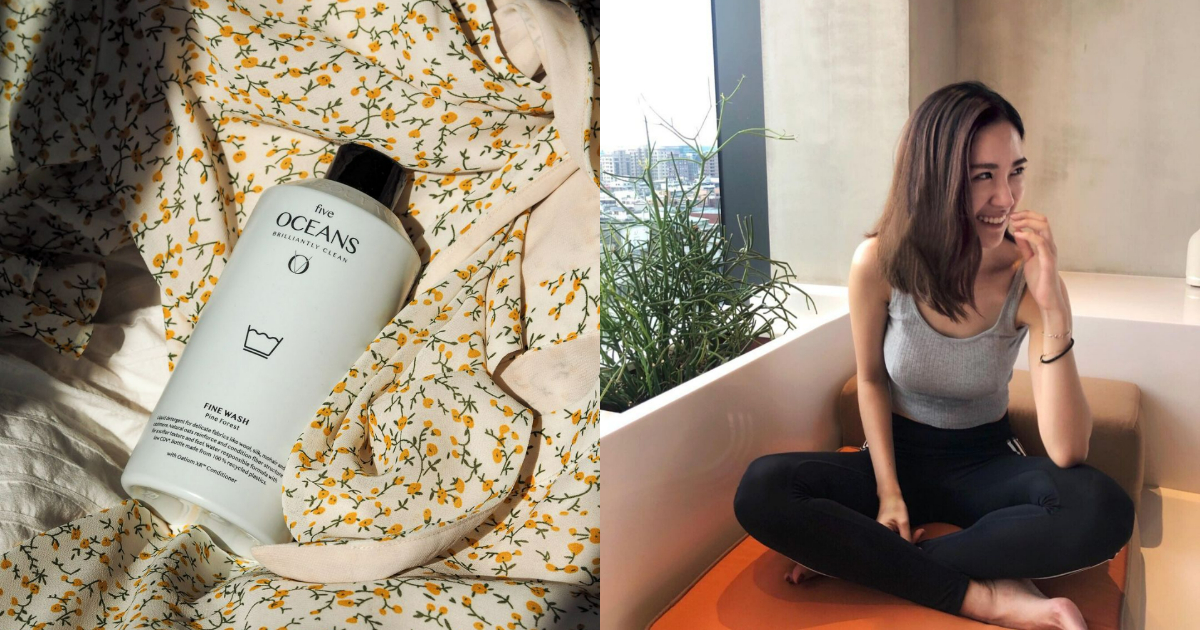 Olivia:基本上我都會建議大家手洗,或是要用洗衣機盡量把胸墊拿出來再洗滌。但我其實是一個滿懶的人,所以都直接放洗衣袋裡面,丟洗衣機。但也因為是我們家的運動衣很耐洗(很多人都這樣說) 褲子我會直接進烘乾機烘乾,內衣會吊起來晾。有個小知識跟大家分享:大多的運動機能服飾、戶外服裝,為了透氣等功能,布料纖維孔隙通常比一般服飾多,若使用柔軟精清洗,就容易有殘留物堵塞於縫隙中,影響衣物機能性,所以清潔運動服時我不會使用柔軟精。這次合作的Five Oceans洗衣精,它裡面的專利有機燕麥成分,可以讓衣物保持鬆軟,不需要額外添加柔軟精,也能享受舒服的觸感。